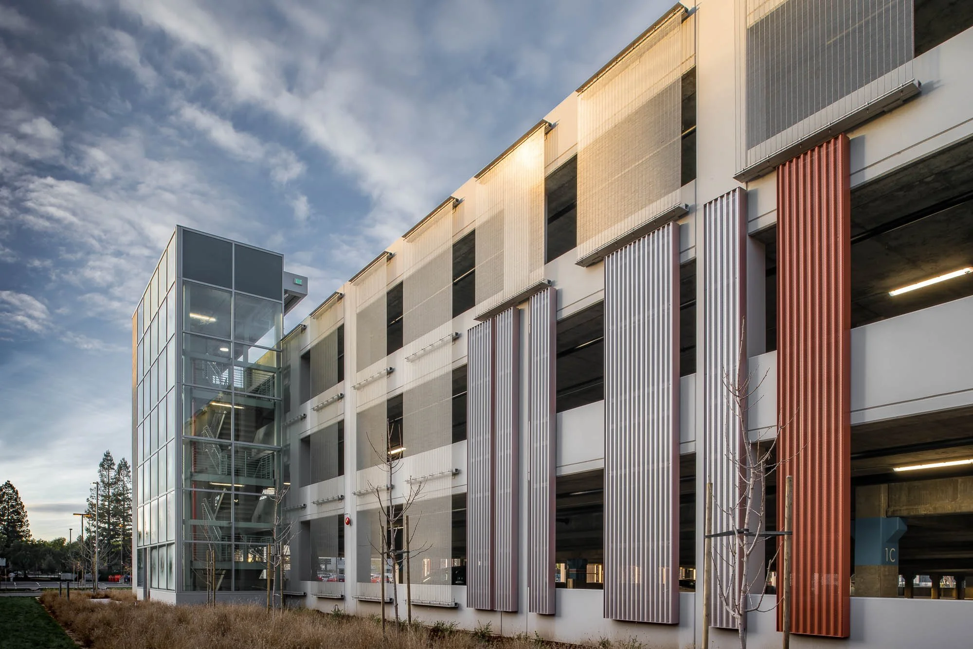 Use of Advanced Materials: Materials like Centria metal panels and GKD stainless steel mesh screens were crucial for achieving a modern, durable facade that enhances the overall look of the parking structure.