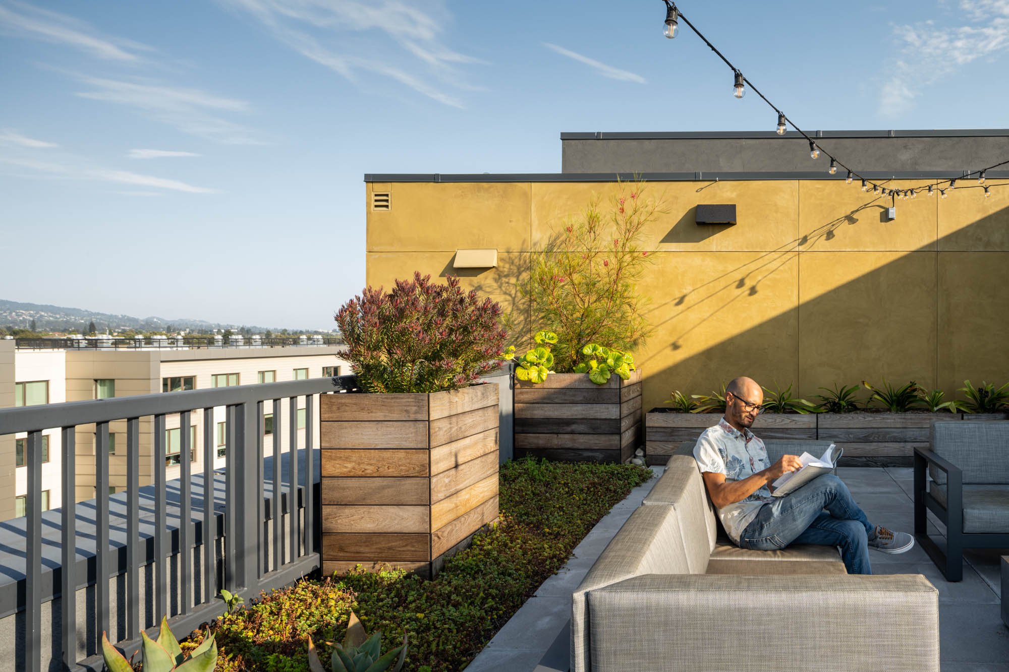 Urban living often means sacrificing outdoor space for the convenience of being close to the city’s amenities. However, at Aquatic Ashby, a mid-rise apartment building in Berkeley designed by Trachtenberg Architects, urban living takes on a new dimension with its beautifully designed roof terraces.
